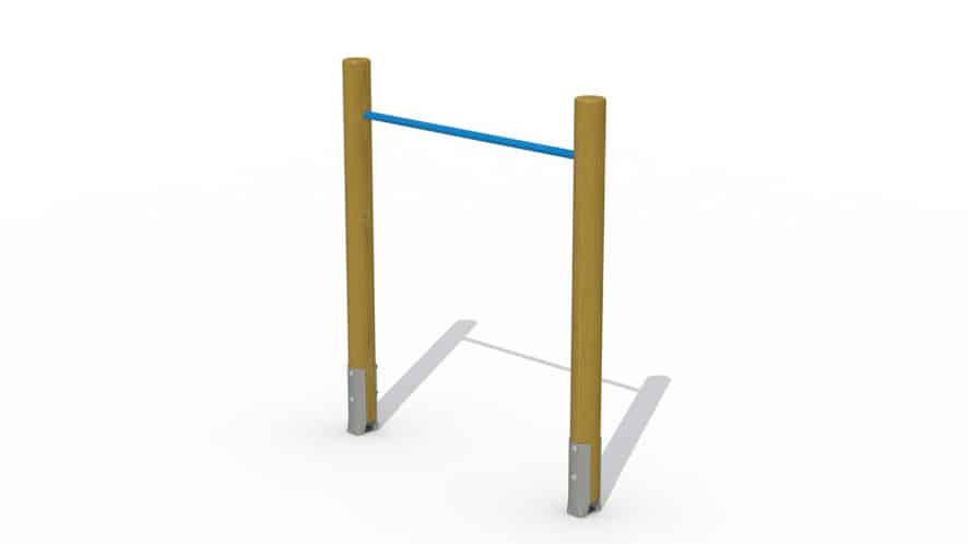 Houten duikelrek met 1 rekstok voor kinderen vanaf 6 jaar. Er kan aan de rekstok gehangen worden en men kan er ook omheen draaien. De rekstok komt op een hoogte van 1,45 m. Er is een extra voorziening aanwezig tegen het verdraaien van de buis. De rondhouten lariks palen hebben een diameter van 12 cm en worden met metalen voetsteunen in de grond bevestigd. Alle metaalonderdelen zijn roestvrij voorbehandeld en alle moeren en bouten worden volledig afgeschermd met kunststof afdekdoppen.