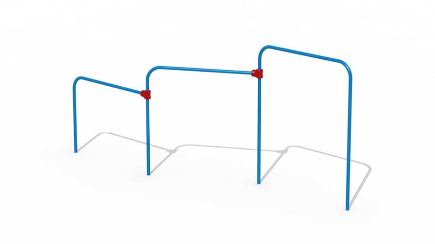 Metalen duikelrek met 3 rekstokken voor kinderen vanaf 6 jaar. Er kan aan de rekstok gehangen worden en men kan er ook omheen draaien. De rekstokken komen op een hoogte van respectievelijk 0,9 m, 1,2 m en 1,5 m. Er…