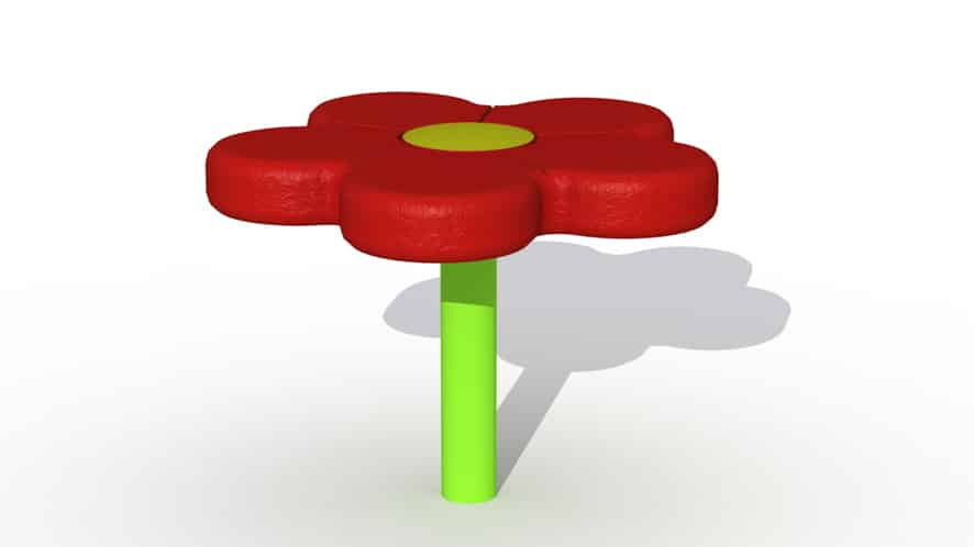 Dit toestel, in de vorm van een bloem, bestaat uit ingekleurd gerecycleerd rubber en mag op een verharde ondergrond en op gras geplaatst worden. De bloem is beschikbaar in rood, groen en blauw, telkens met een gele centrale stip. Alle metaalonderde len zijn roestvrij voorbehandeld. Het toestel is geschikt voor kinderen van 3 tot 10 jaar.
