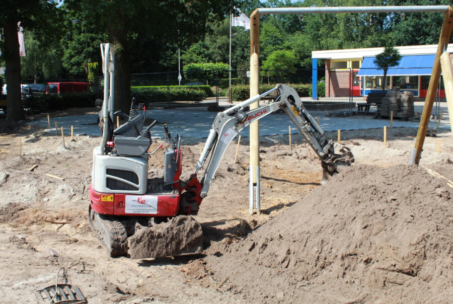 • Je gaat aan de slag met het uitzetten van de speelbakken en de contouren van de nieuwe speelzones.